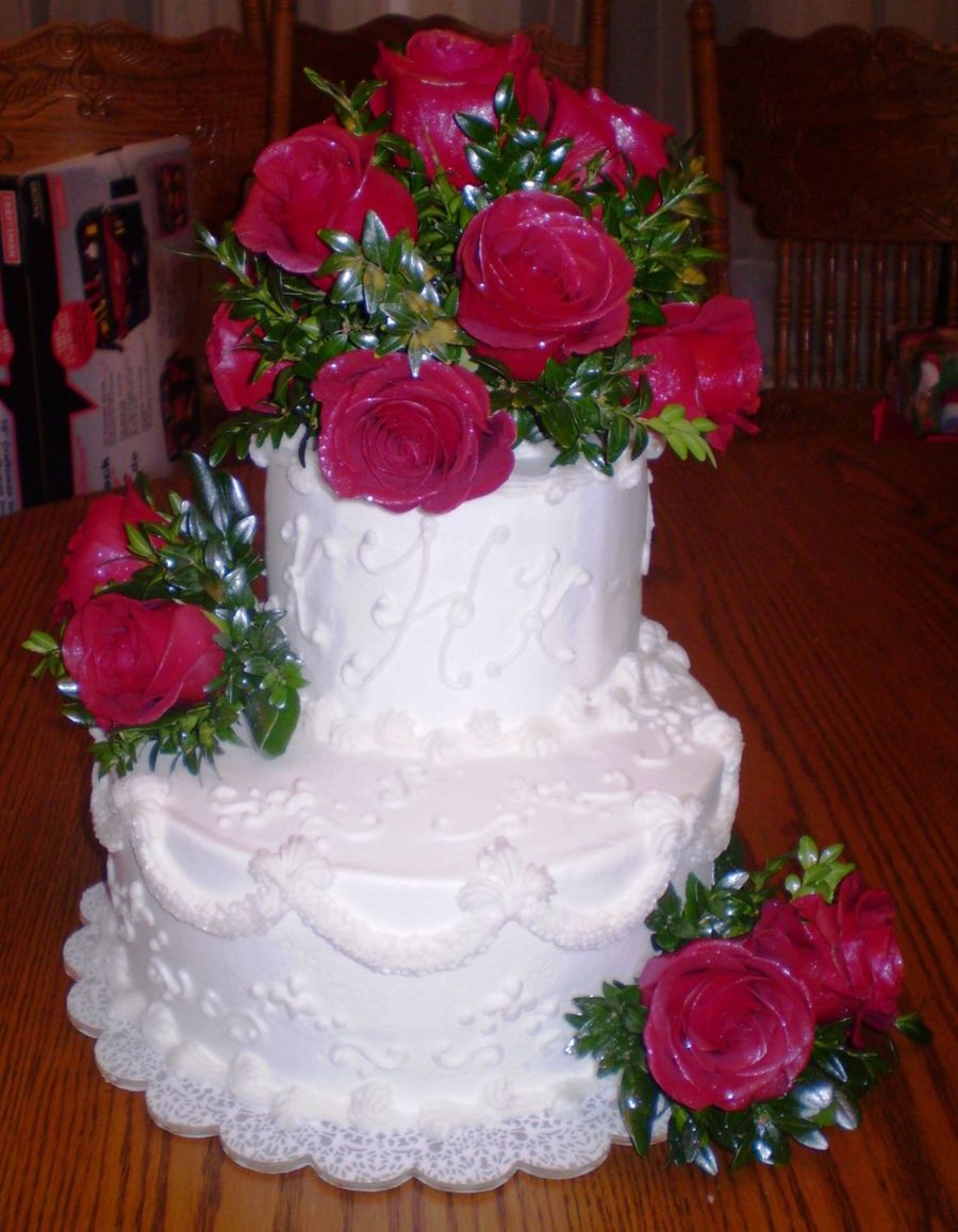I tried to do some of Than Than's pretty work with buttercream though. Definitely not as pretty, but I liked how it came out. Unfortunately though the bride picked up the cake and when they put it in the limo they decided the front seat with the heat on was the best place for it. Needless to say the frosting slid off and the restaurant re-did it with a comb. I'm so Glad she is easy going and didn't really care!