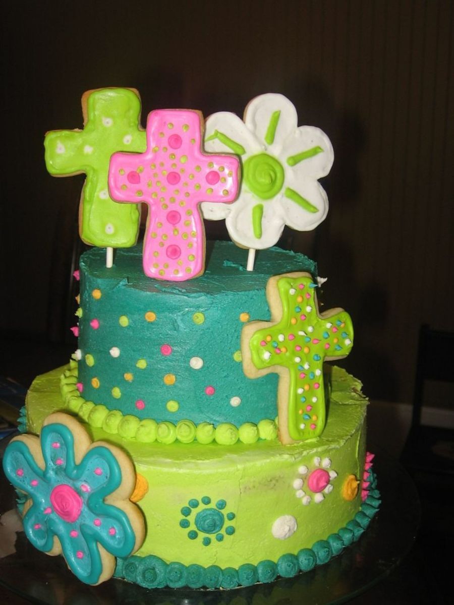 Cute cake - I like your design and colors. You might want to use a paint brush dipped in cornstarch and "pat down" the points on your dots. It takes away a bit from how cute your cake is. Hope you don't mind a little constructive advice. Again - I like your design :)
