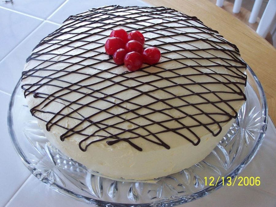 This is a cake I made around Christmas time that is Black Forest on the inside