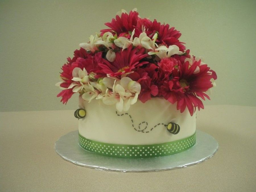 CakesByLJ on 17 Mar 2008 , 9:11pm Gorgeous cake~! The flowers are arranged beautifully, and the bees are adorable~!