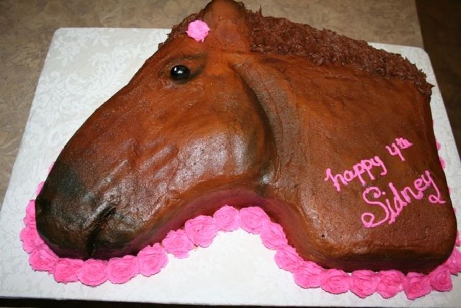 My first horse cake for a little girl's birthday. Icing patted down to smooth it and then airbrushed.