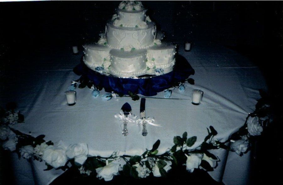 This is my first wedding cake. It's seven cakes all together. 5 7in on the bottom, 10 in middle and 6 in top. This is the cake i made the bridal sample cake for.