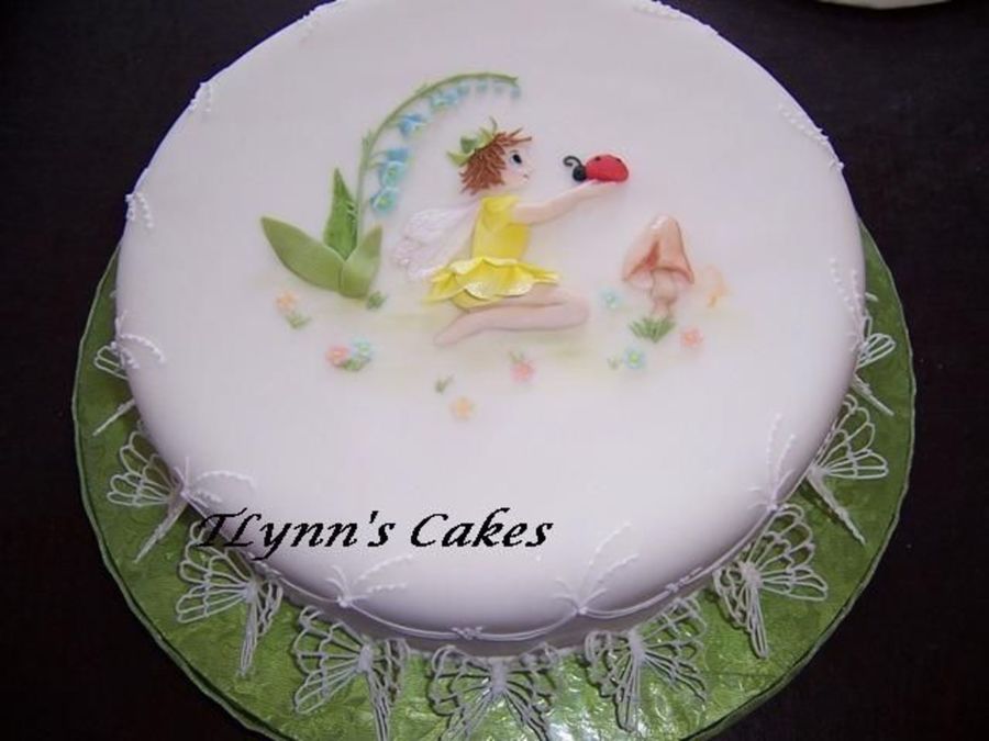 This is a bas relief pixie with royal icing lace butterflies around the eds.