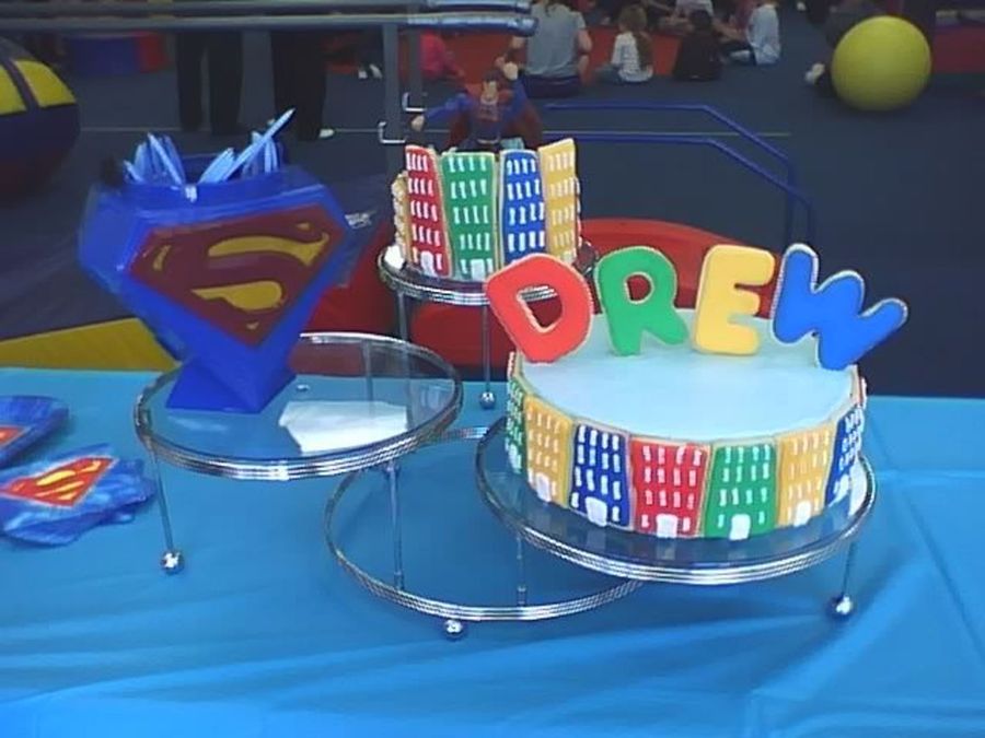 The cookies are NFSC with Royal and the cakes are french vanilla with BC. The superman coming out of the top of the cake was inspiration from another cake from here.