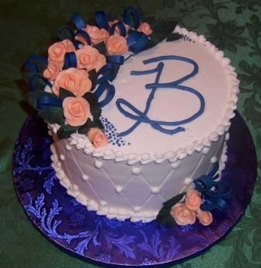 I made this for my Grandma's 85th Birthday. Peach and blue are her favorite colors. I got inspiration from ome ofS Sugarshack's cakes as well as one of Earlene's. Thanks for looking!