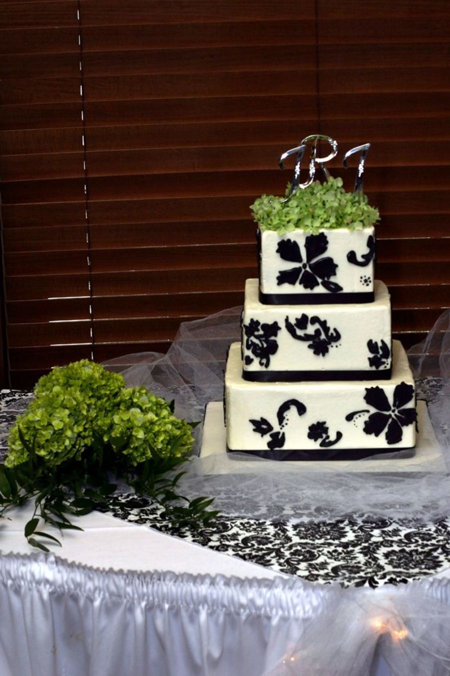 This is a really beautiful cake. I love the color combination of the black, white and green. It's very sophisticated looking. Just gorgeous!!