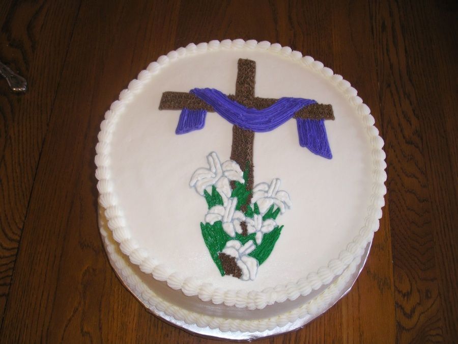 subaru on 23 Mar 2008 , 2:52am Very pretty Easter cake. I like the fact that it doesn't have any writing on it. The cross says it all. Great cake.