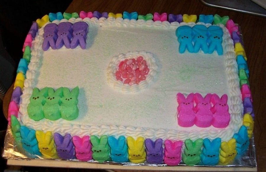 A colorful Easter cake I made recently, I used my favorite frosting and stuck the Easter Bunny Peep's around the outside edge. Turned out SO CUTE!