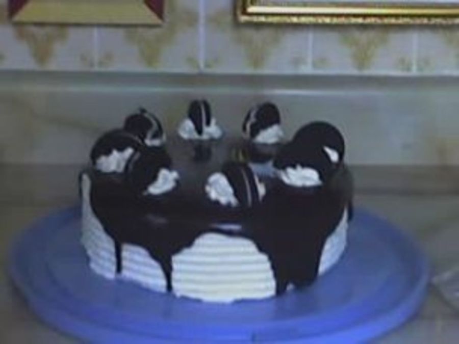 French vanilla cake with Oreo buttercream filling,covered with Whipped cream & chocolate Ganache.