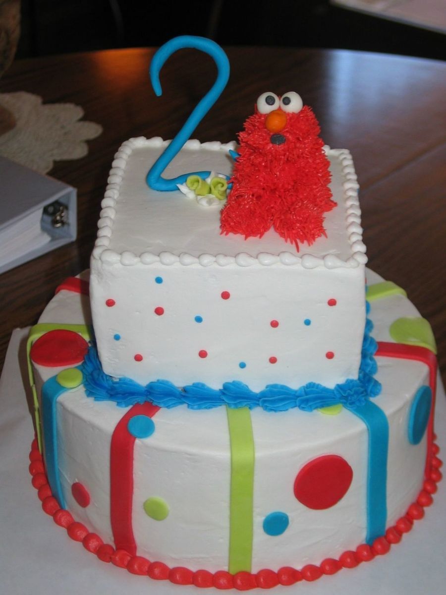 This was all white with buttercream frosting and fondant accents. The number two was fondant and fat Elmo was made with fondant and then frosted with the grass tip. This was so fun, to make and see Elmo actually look like Elmo. I had never done a character before.