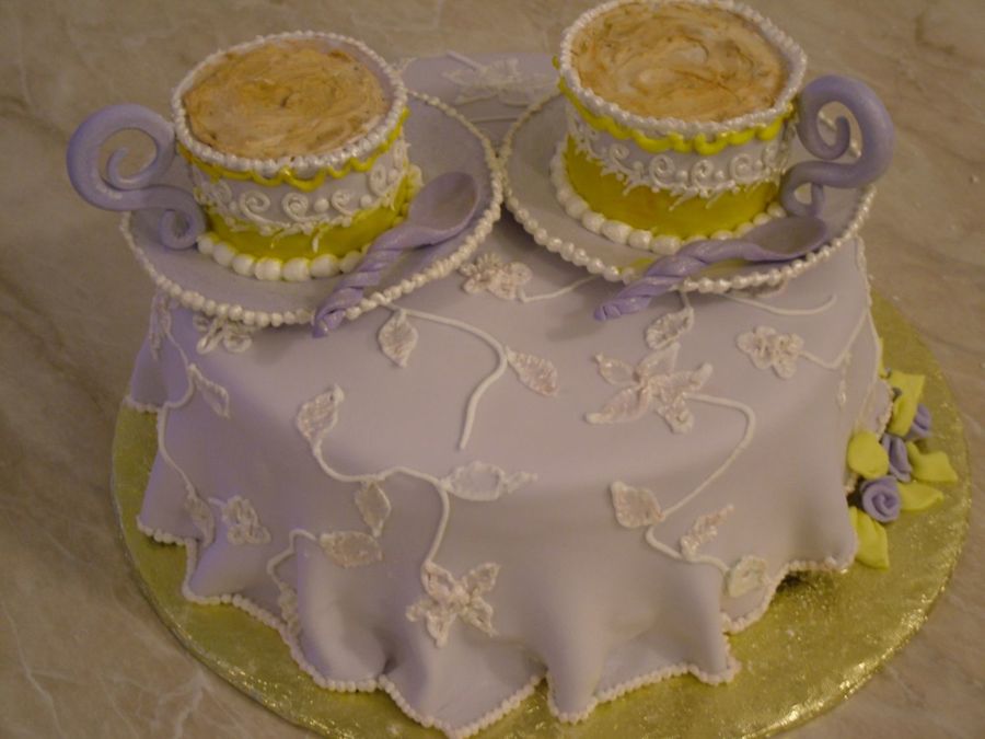 WOW! This cake is beautiful! I love the tea cups, are they made out of cake?