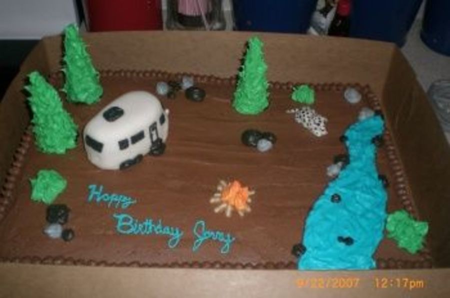 I loved doing this cake. Thanks KathyC!! Lots of things I'd do differently next time around, but only because of my inexperience. Full sheet cake Vanilla Cake with Choc BC frosting. Fondant accents.