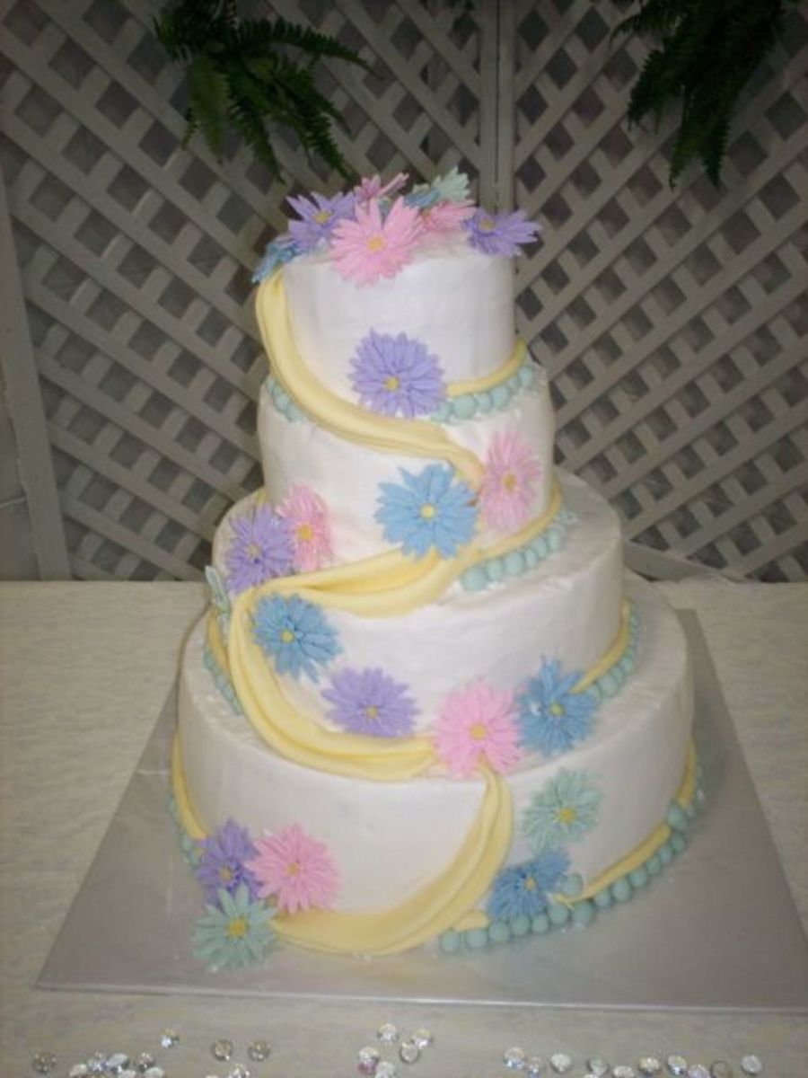 Nice cake. The drape is perfect and the flowers are beautiful.