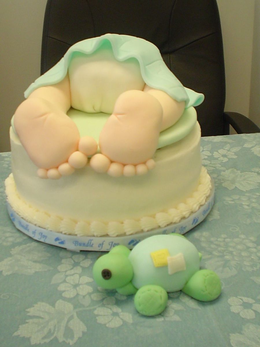 I've seen baby bum cakes on CC and drooled over them, thinking they're just the cutest things EVER! And I finally had an opportunity to try one! Yay! This was for a baby shower at work yesterday. Everyone seemed to love it! Booty is RKT covered in fondant, legs, blanket and "stuffed" turtle are fondant. They're doing the nursery in frogs and turtles so I wanted to incorporate that into the cake. :)