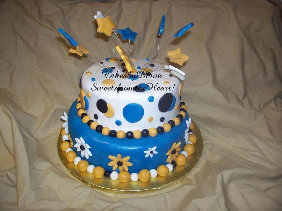 JulieB on 2 Apr 2008 , 6:37am Oh, like this. The blue and gold are so nice, and I like the stars on wires. I'll have to try that.