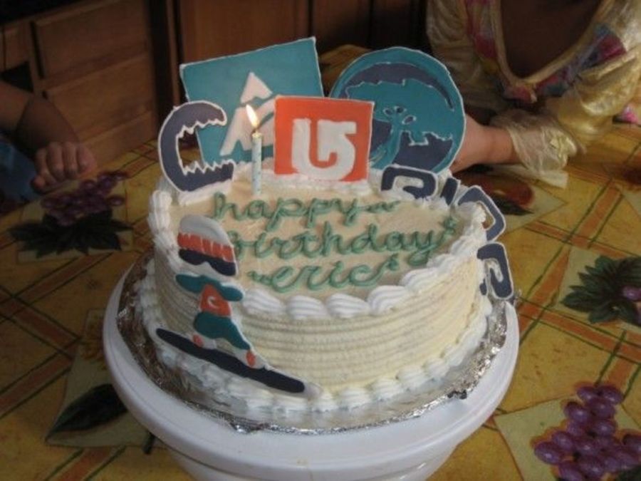 vanilla ice cream as frosting. The symbols were made with cake flow and the writing is with buttercream.