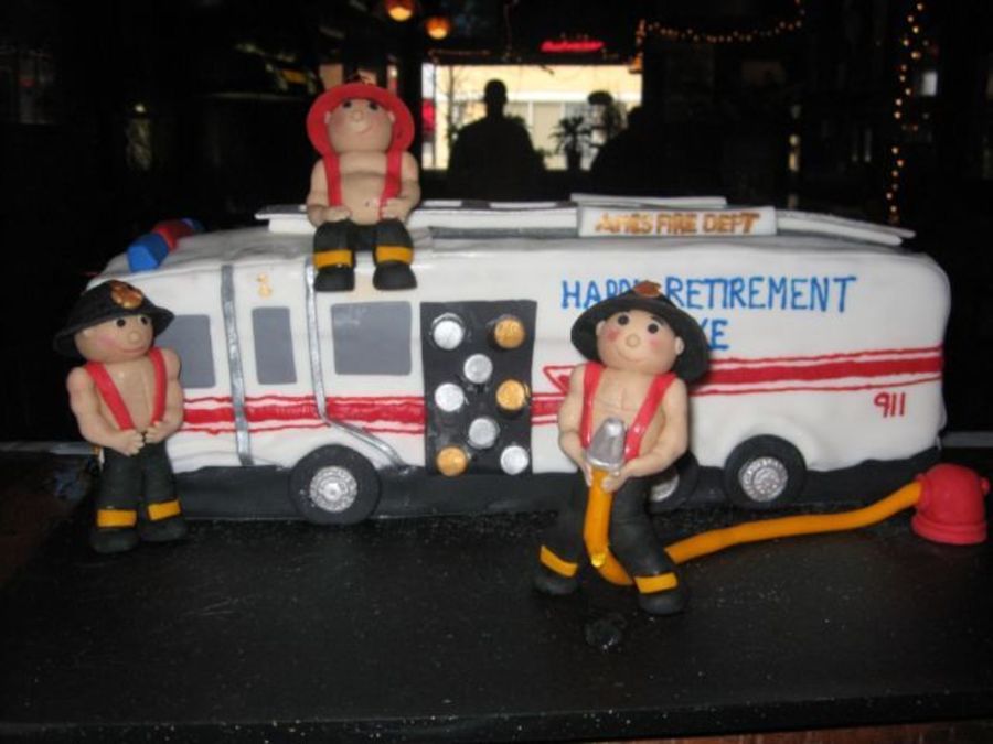 This is a cake that I made for a LT who was retiring after 24 years at our local fire department. This is the first time that I had modeled people, it was a hoot. Thanks to Debbie Brown for the inspiration!