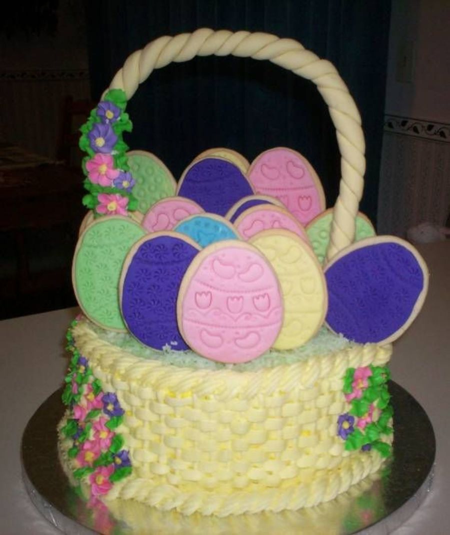 Made this basket cake for family Easter. Chocolate cake, buttercream icing, NFSC with MMF for eggs, and RI flowers. The handle is fondant strengthen with gumtex..it broke anyway, hence the flowers on the handle hiding the repair. Would use gumpaste if I were doing another one.