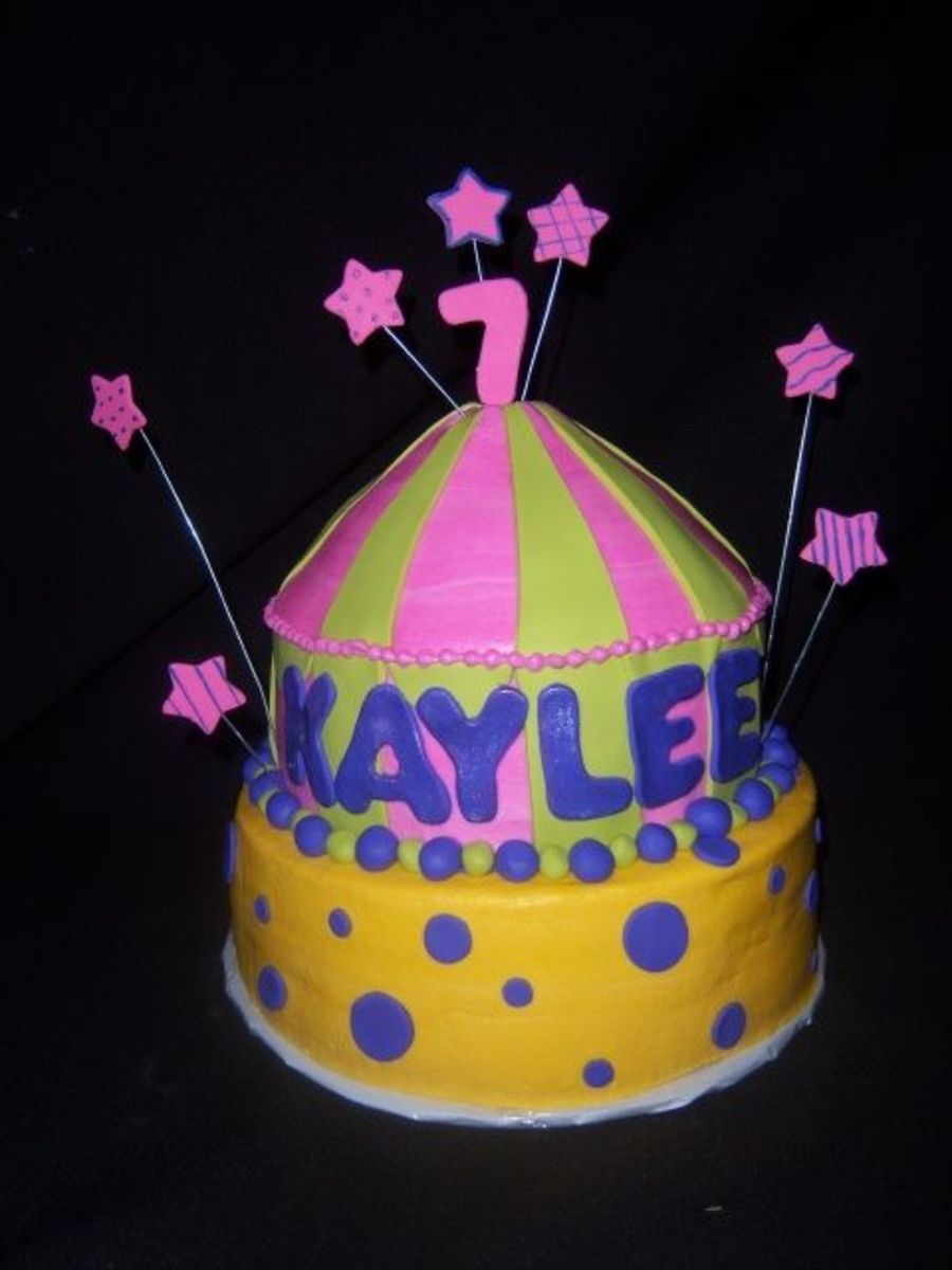 Was asked to make a carnival themed cake but in girlie colors. This is what I came up with. All covered in CBC with fondant accents. Thanks for looking.