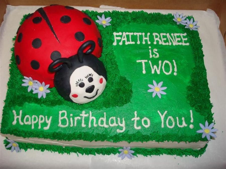Thanks! The ladybug is made from one half of a ball pan and the head is one half of a mini-ball. I covered it in BC and then gumpaste. Made the antennae the night before with gumpaste and put them on toothpicks to stick them in.