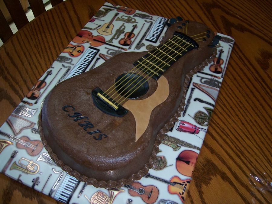 I used the Wilton Guitar pan and from one end to the other one spaghetti noodle fits perfectly using 6 in total with little resizing, and after I got the noodles from one end to the other, I then broke and fitted pieces to fit from the end of the strings on the neck to the tuning knobs..