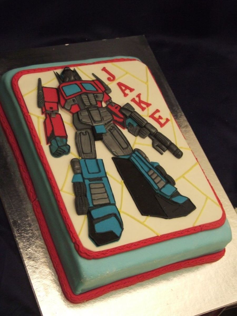 Fondant plaque. Transformer made with layering fondant cutouts.