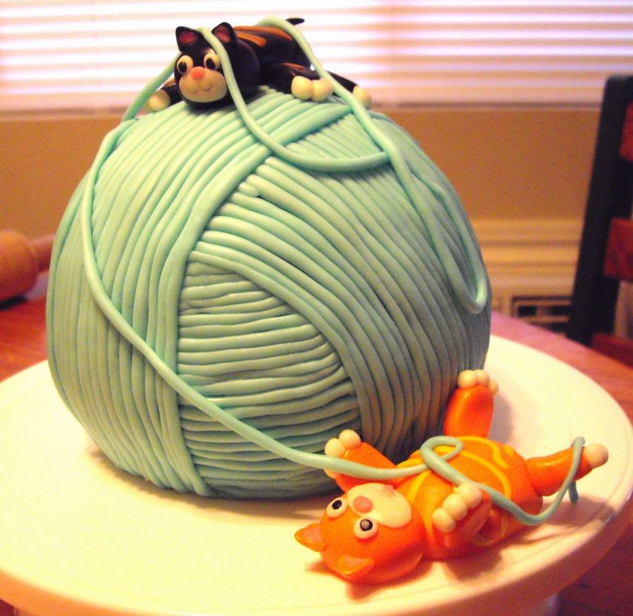 This cake was inspired by Debbie Brown's playful kitten cake! This was my second time
