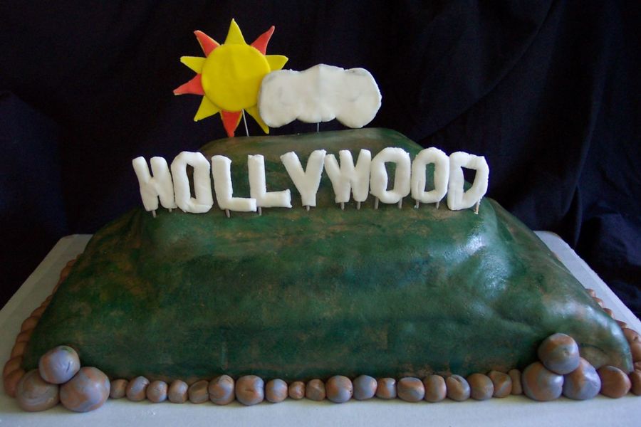Triple chocolate cake filled with mocha filling, covered in chocolate butter cream and chocolate fondant. Hand painted the "hill" Lettering, sun, and cloud made from fondant with gum-tex added.