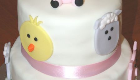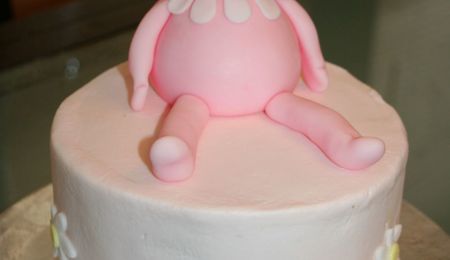 This is technically my 3rd cake but I don't have any pictures of my first & second. It's a 3 layer vanilla cake with Chocolate Buttercream decorated with MMF. I'm addicted to decorating cakes with MMF. Sooooo fun!
