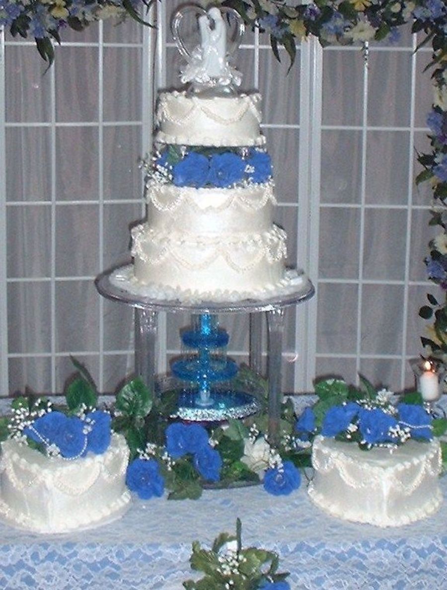 This was a 12",10" and 8" round white cake with buttercream icing and fondant pearls. The 2 cakes in front were 10" heart and were marble flavor. Flowers were all silk.