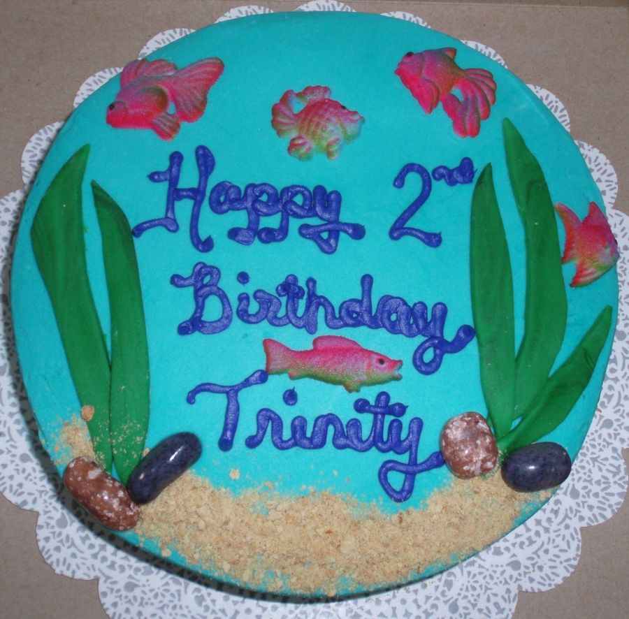 Fondant seaweed, graham cracker sand, candy rocks and sugar fish. Iced in buttercream. BTW I was very mad I didn't do the fish myself in fondant! Def not beyond my talent, I just wasn't thinking!