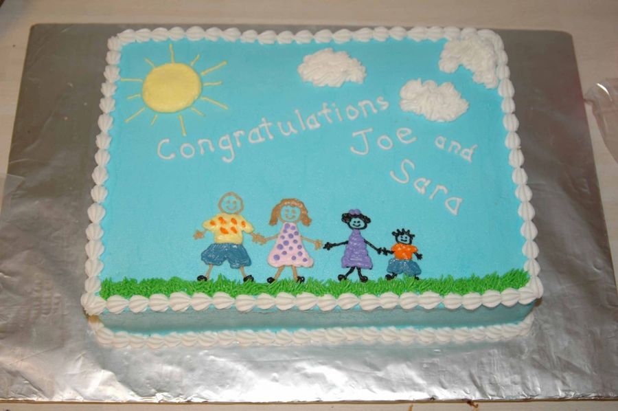 I make this for some friends who were adopting two kids from Haiti. I got the idea from another cake on this site.