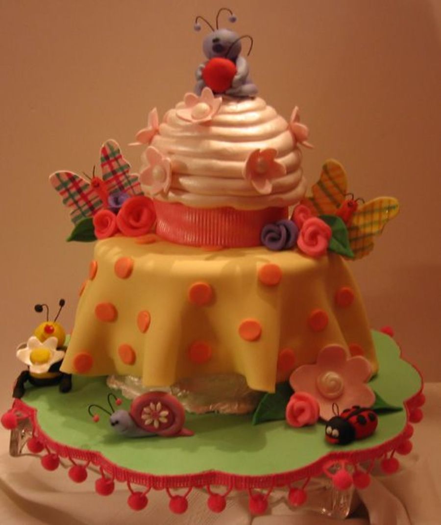 Wow!! LOve it. The little bugs are adorable. Love th ebee holding the flower but I especially love the bug on top of the cupcake. Too cute. You did a great job.
