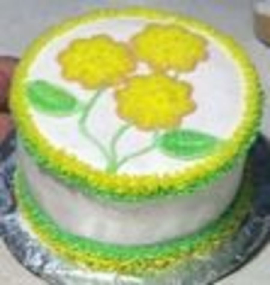 Decorated this one during the Wilton course 1. Used a cookie cutter to get the flower design.