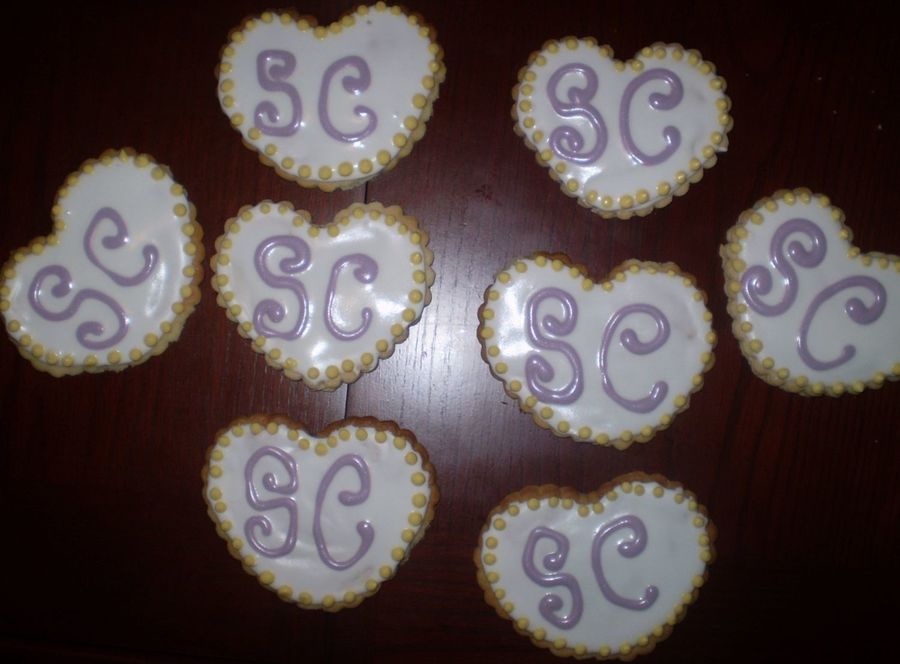 Made for a taste testing. I made 3 different type, white choc, cream cheese and sugar cookies and put the first letters on each cookie. These, obviously are the sugar cookies (SC).