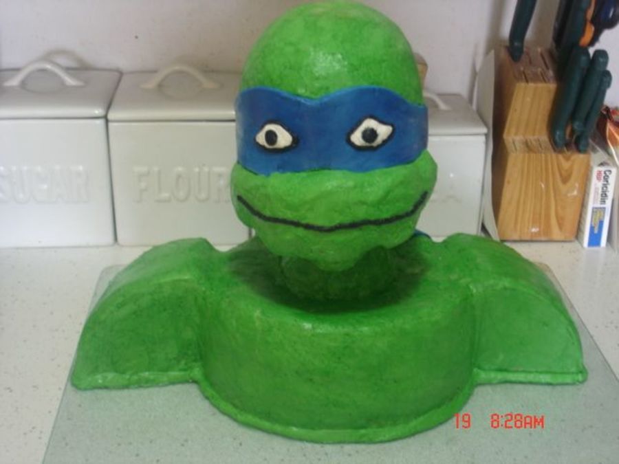 I made this cake for my nephew's 5th Birthday. I used the instructions for making a 3-D Bust cake. I built up the nose and mouth with cooked biscuits (I couldn't get rice crispies to stick). I used fondant for the mask.