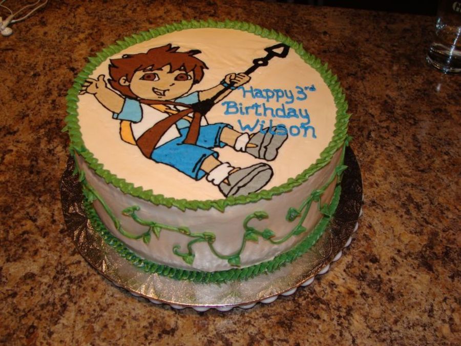 Frozen buttercream transfer for Diego. I used the leaf tip for the border.