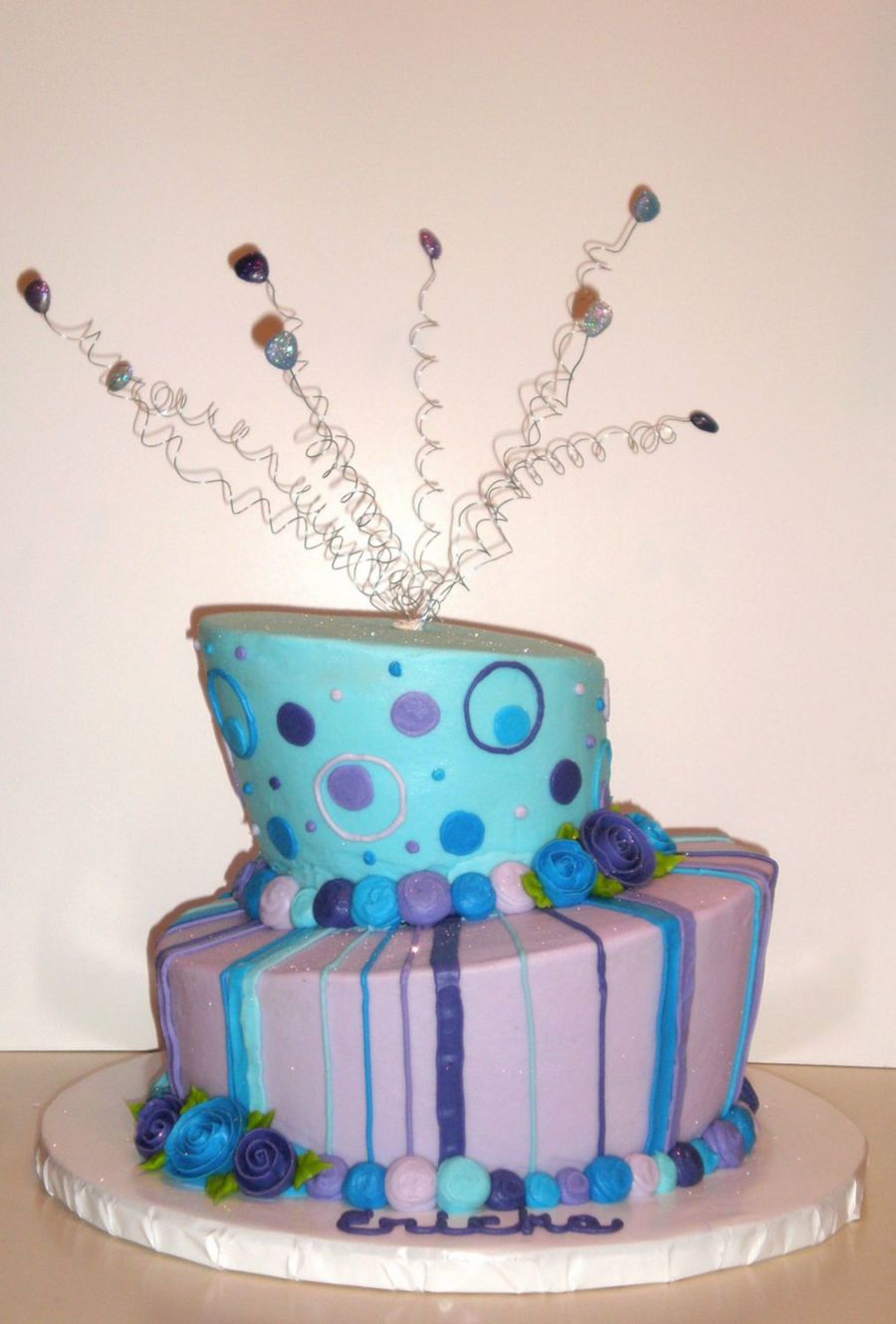 This was for my best friend's daughter. This was my first whimsy in all BC--I prefer doing them in fondant--MUCH cleaner look! (Of course if I wasn't rushing, it probably would have looked cleaner... Hee Hee). I made these funky ribbon rose type things out of BC--I though those were cool. The topper was silver dragee hearts attached to wire, then the hearts dipped in various pixie dusts.