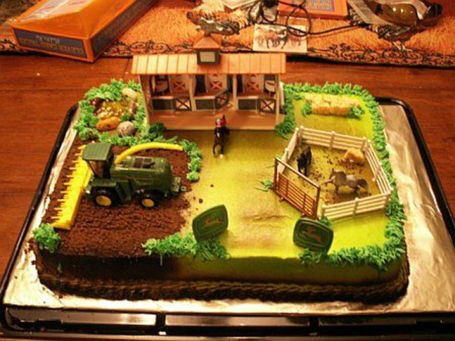 Made for a co-worker for her son.She wanted the tractor barn and horses on the cake to match her theme. First time to use my air brush, and I really liked it.