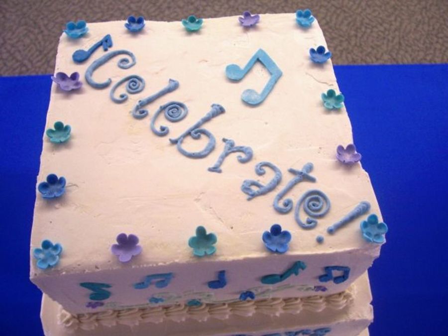 top view of women's chorus anniversary cake. "Celebrate" was the theme of the concert program.