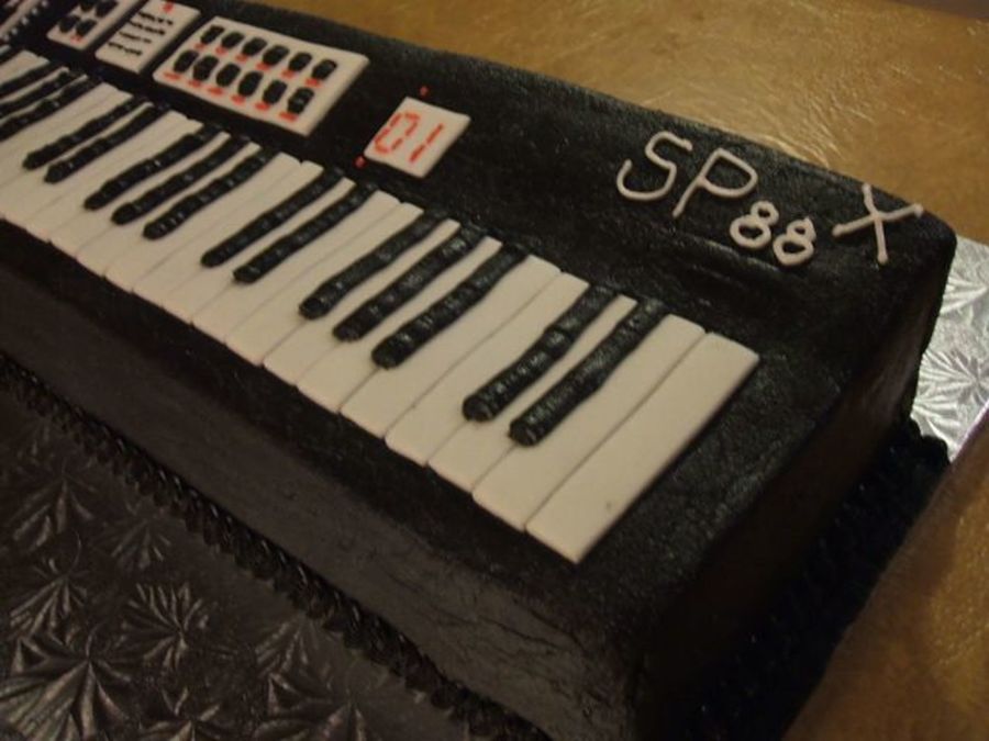 I made this cake for my husband's birthday. He has the plays the keyboard, so I kind copied his. I used DH yellow cake, the filling is BC vanilla, almond, butter flavored. I used black BC to cover the cake, with fondant for the details. Thanks for looking. :)