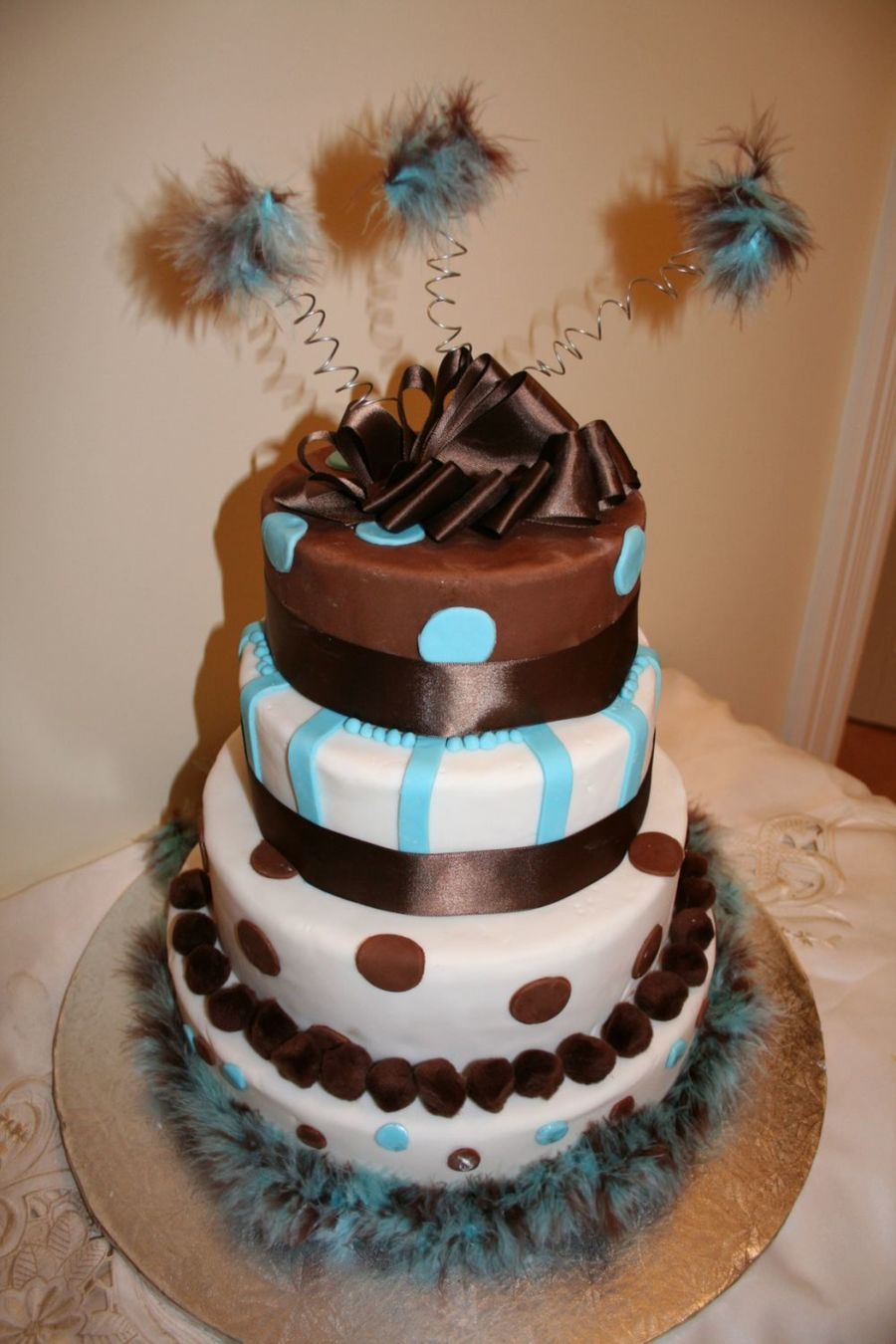 Amanda80 on 30 Apr 2008 , 6:16pm Wow, what a great looking cake.... I love the brown and blue too.. :D