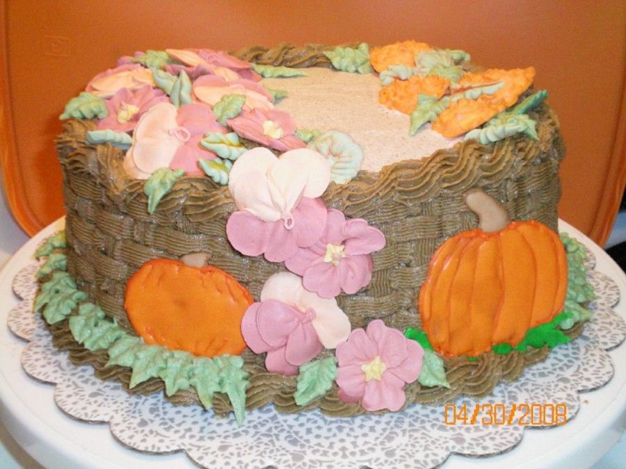 My cake is a spice cake with a cinnamon buttercream filling and crumb coat. The flowers are made from the royal icing and the leaves are royal icing as well as the cinnamon buttercream. I hope you like it as much as I did making this one!