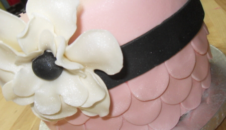 giggysmack, sorry I forgot to address the support question. I used royal at the back like adhesive between the two and then it simply rested on the two dowels that were sticking up. The one main dowel that went clear through the entire cake for stability, and then the smaller dowel up front that was only on the top cake board. And I kind of pushed them into the fondant to keep them from sliding. I hope that helps!