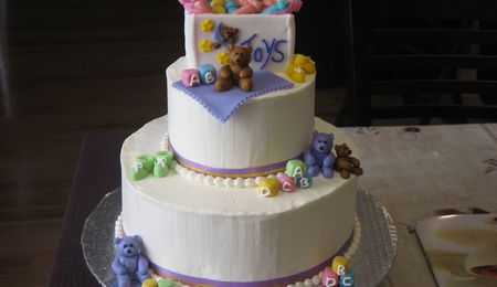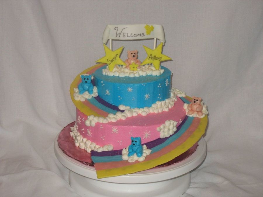 My neighbour and I had our babies a week apart ( I had a girl and she had a boy) and I made this cake as a welcome home for both babies.