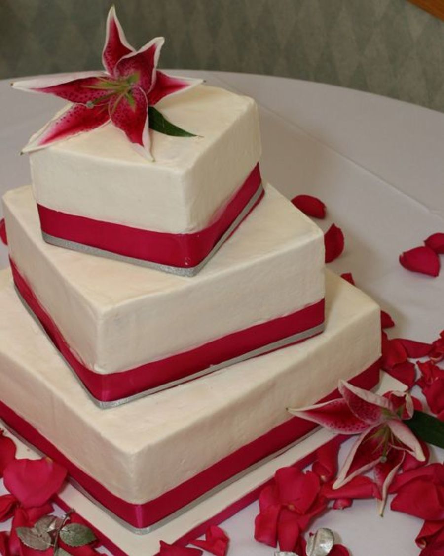 i had a really hard time with this one. the ribbon didn't want to behave for me, the icing kept getting smudged, and it was being just difficult! i hope i pulled it together okay. bc icing, fuschia and silver ribbon, and fresh flowers. thanks for looking! all comments appreciated!