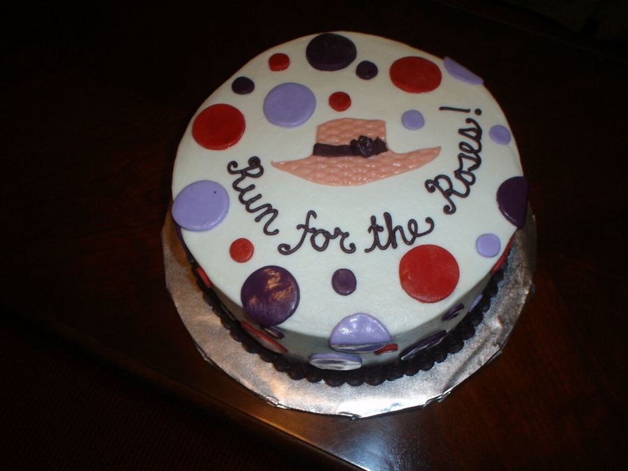 The circle design and colors matched the paper plates the woman had for her Kentucky Derby party. Circles and hat are fondant.