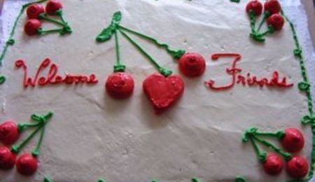 Pictures don't do justice for how cool this turned out! I used bottom of Barbie cake form for the volcano, snuggled up to 9x13" sheet. Frosted mountain in chocolate breakfast sandwich spread (kind of like Nutella, only all chocolate), frosted the "valley floor" in 7 minute frosting, bc lava flow & trees, and red fiery edible glitter for the fire. The boy was so delighted with the finsihed product, he announced to his class that he had a REAL volcano for his birthday! hehe