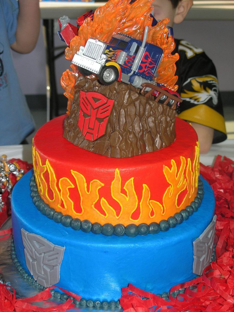 This cake is totally cool! Just love it! How did you do the flame on top? How did you do the fondant transformer symbols? I would love if you PM me or post a how to do! :D