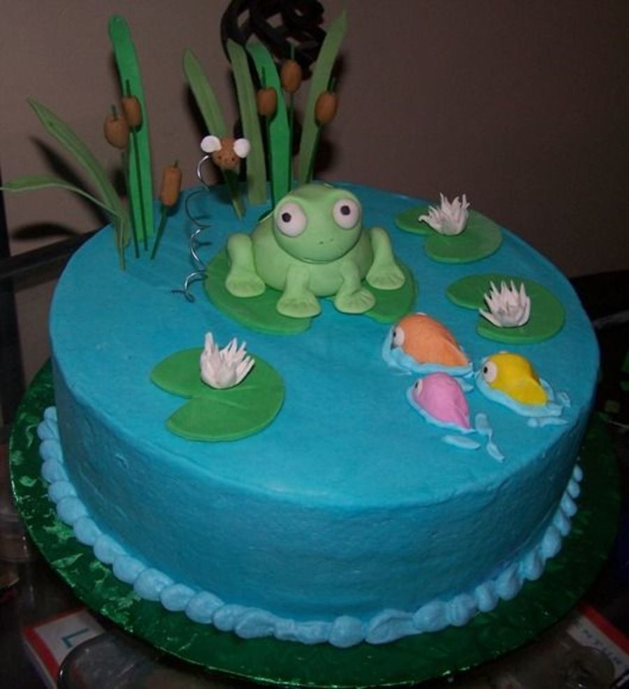 Charmaine49 on 7 May 2008 , 5:53am Your cake looks amazing,love all your figurines, those fish look cute swimming towards the frog, well done!! ;-D
